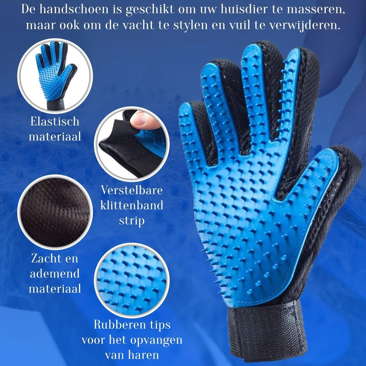 Om deze set helemaal compleet te maken wordt deze geleverd inclusief borstelhandschoen. Met deze borstelhandschoen/ontharingshandschoen verwijdert u eenvoudig losse haren, stof en vuil uit de vacht van uw huisdier.