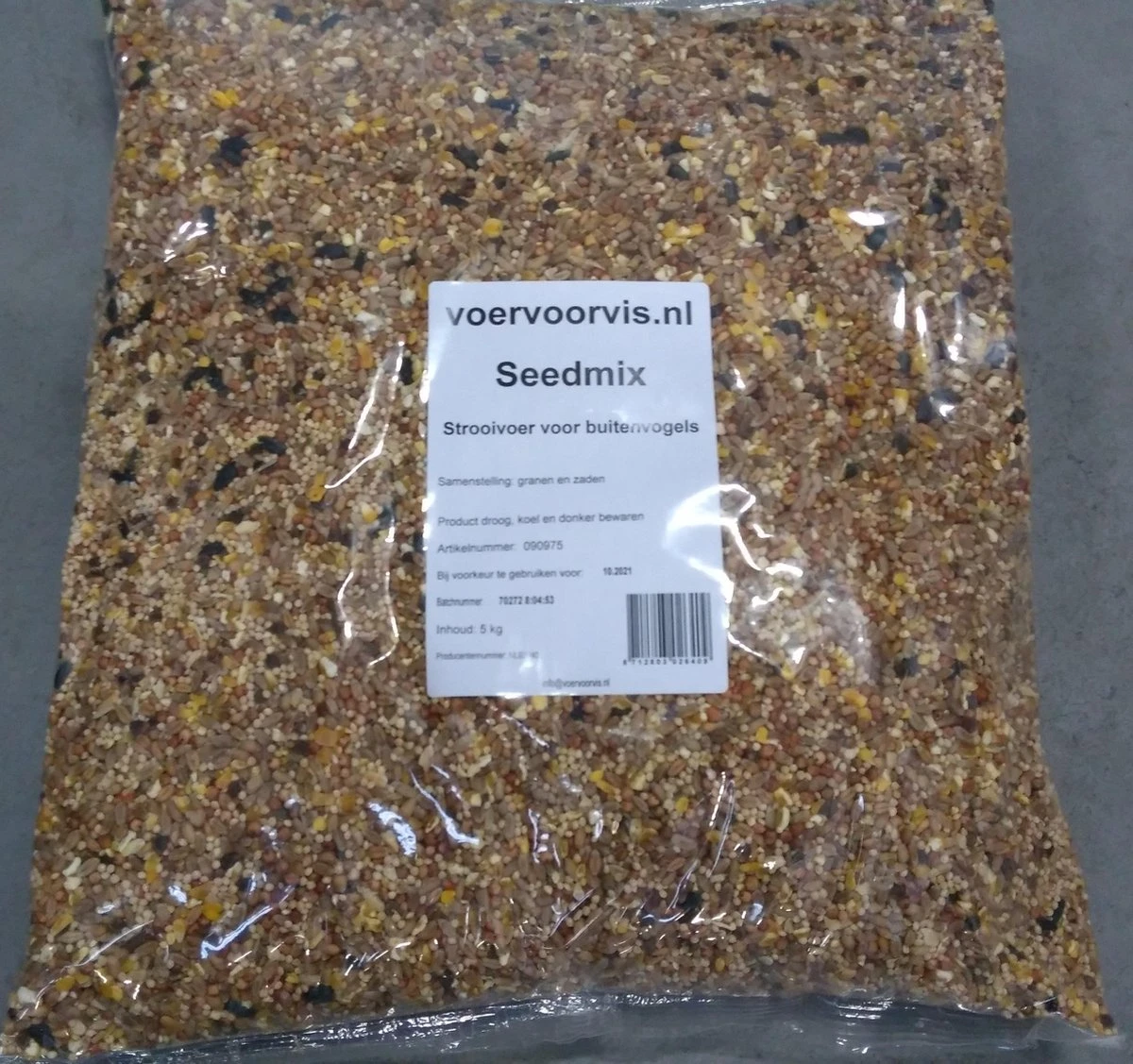 Samenstelling: tarwe, rode dari, maisgrutten, wit millet, boekweit, spinaziezaad, zwarte zonnebloempitten, raapolie.