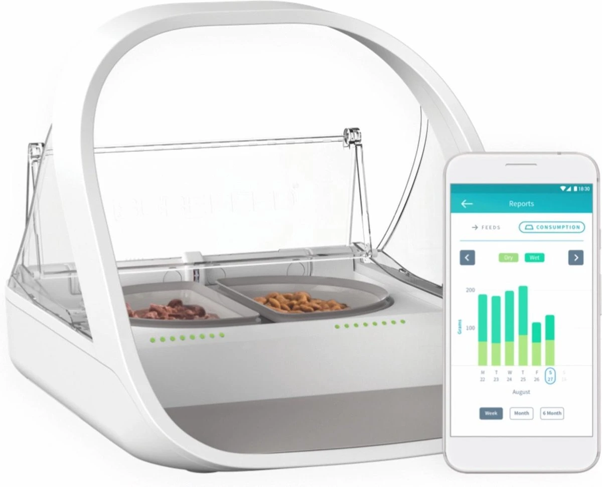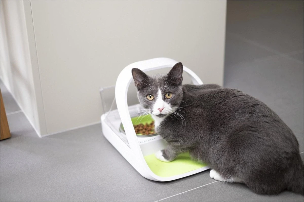 Wanneer je meerdere katten hebt, kan het soms lastig zijn om ervoor te zorgen dat iedereen zijn eigen eten heeft. Misschien heeft jouw kat wel dieetvoeding of zit er een hongerige kat tussen die het eten van de rest opeet. Maar het kan ook zo zijn dat je hond probeert de kattenbrokjes op te eten. Met de Microchip Voerbak Connect van SureFeed voorkom je dat andere dieren bij het voerbakje kunnen komen. In tegenstelling tot de normale Microchip Petfeeder, heeft deze variant een mobiele app waarmee je het eetgedrag van je kat in de gaten kunt houden.