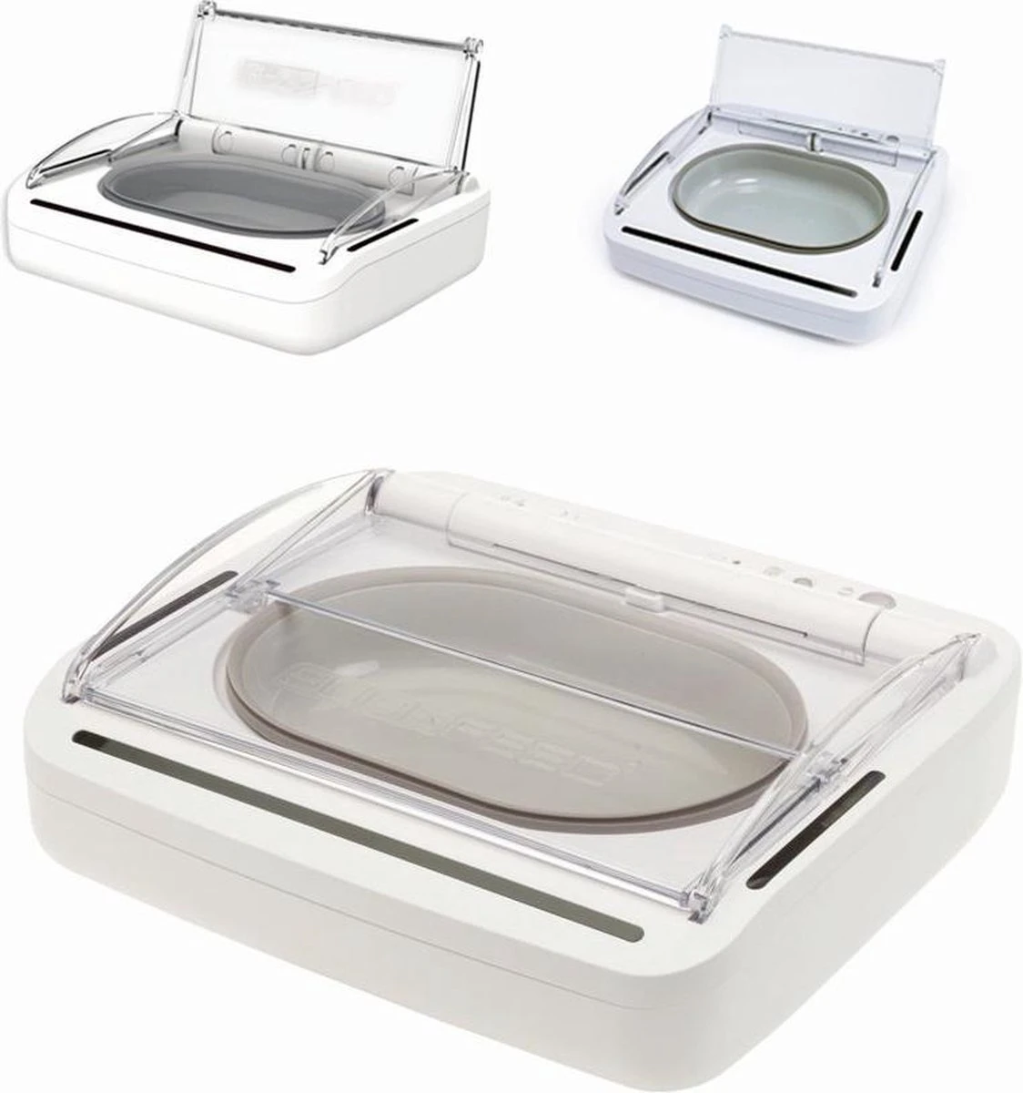 - Het klepje van de voerbak gaat automatisch open als je huisdier komt eten en sluit daarna weer automatisch af