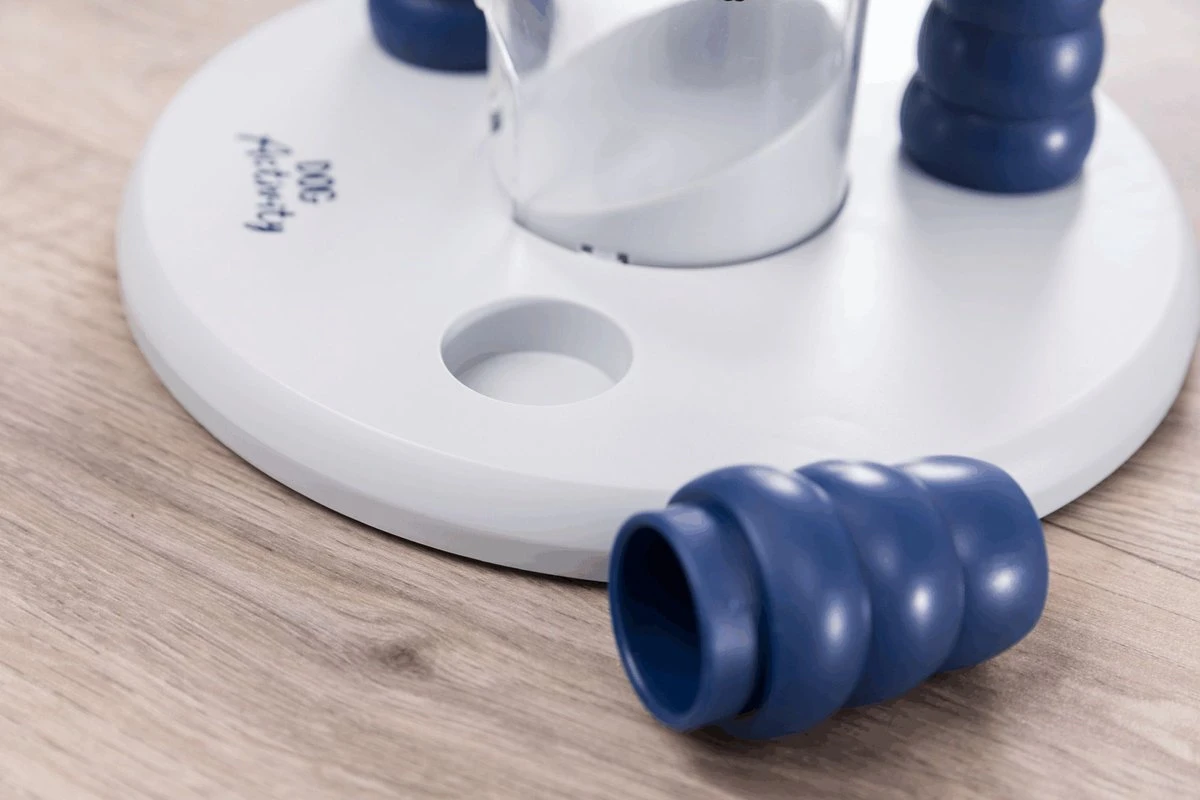 De Trixie Gambling Tower 27 x 25 cm is een intelligentiespel voor de hond, een toren met schijven en kegels waar de hond snacks uit moet zien te krijgen.
