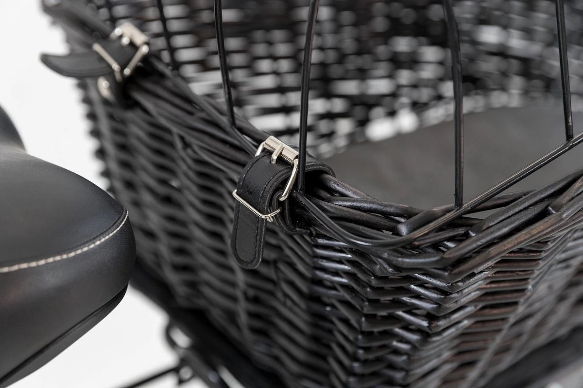 Trixie Fietsmand met Draadkoepel Achterop Zwart 35x49x55 cm• Van wilgentakken • Met gegalvaniseerd en geplastificeerd gaas • Voor vervoer van het dier op de bagagedrager • Kussen met velours-overtrek, grijs • Kussen: handwas • Kleur: zwart Kleur: zwartAfmetingen: 35x49x55 cmMateriaal: wilgentakken