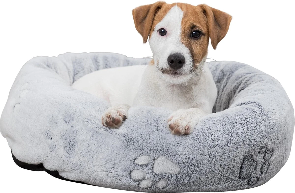 Het Trixie Hondenmond Nando Rond Lichtgrijs van 50 x 40 cm is een comfortabel hondenkussen met rand met en kussen, bekleed met heerlijk zacht fleece en wasbaar op 40 graden. Heerlijk uitrusten doet jouw viervoeter in deze comfortabele mand van Trixie. Mand Nando is een rond hondenbed met polyestervlies vulling en bekleding van heerlijk zacht fleece. Tegen de rand kan jouw dier lekker opkrullen en de mand heeft een kussen voor meer comfort. De mand is wasbaar op 40 graden en uitgerust met een leuke print met pootafdrukjes.