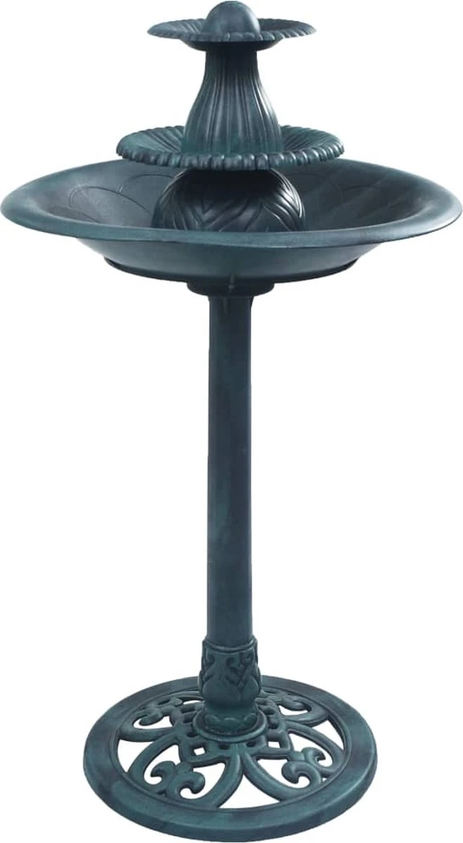 Dit prachtig gedecoreerde vogelbad met fontein is een echte blikvanger in je tuin, op je balkon, op je terras, enz.