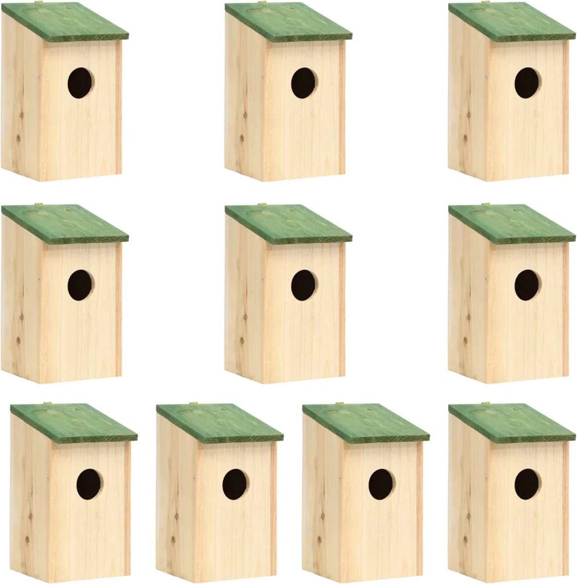 Deze set van 10 mooie houten vogelhuisjes, gemaakt van duurzaam hout, is ontworpen voor een gelukkige gevederde familie! Het fleurt je tuin op en biedt onderdak aan je gevederde vrienden.