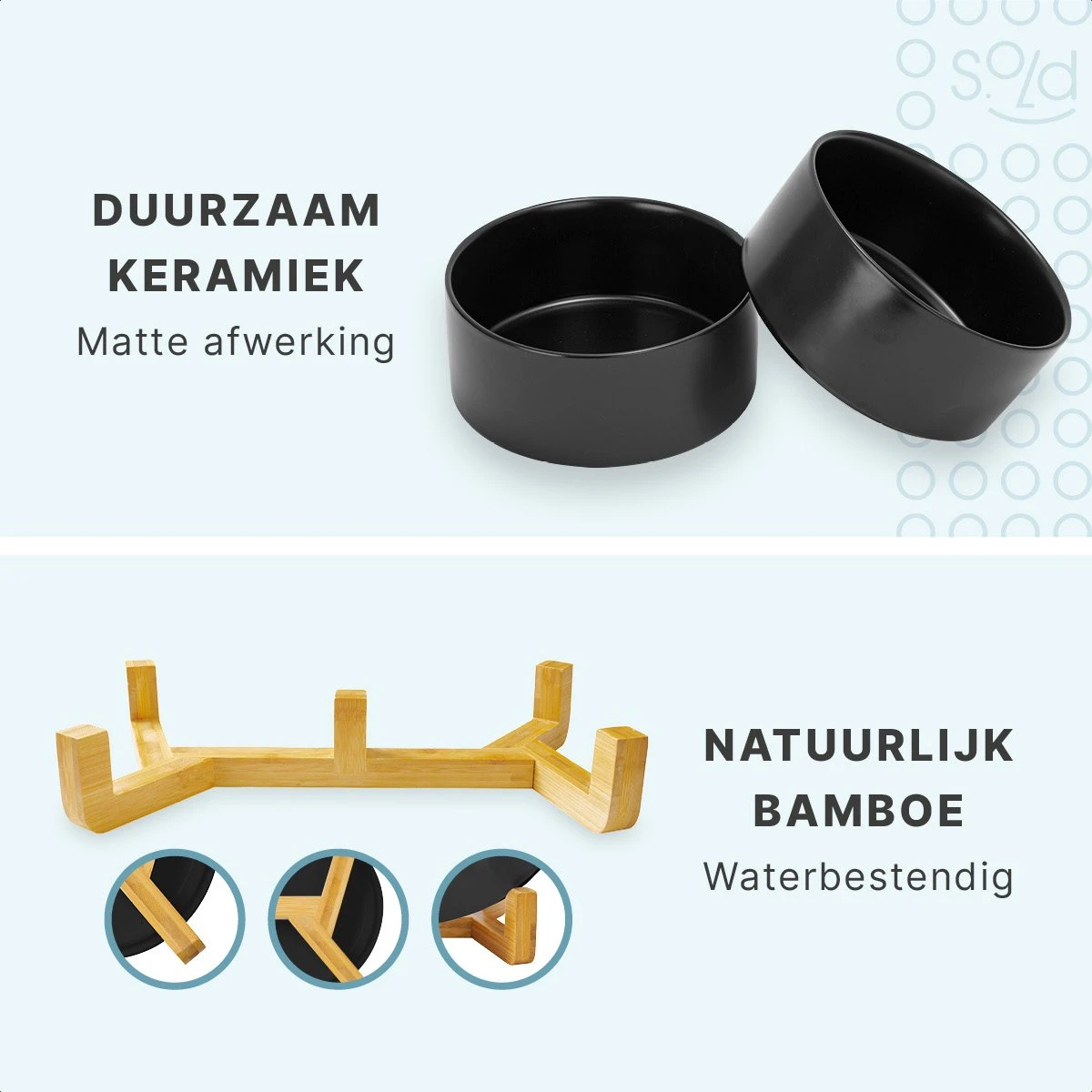 Voerbak Hond – Drinkbak – Met Standaard – 2x 800 Ml – Maat M – Zwart