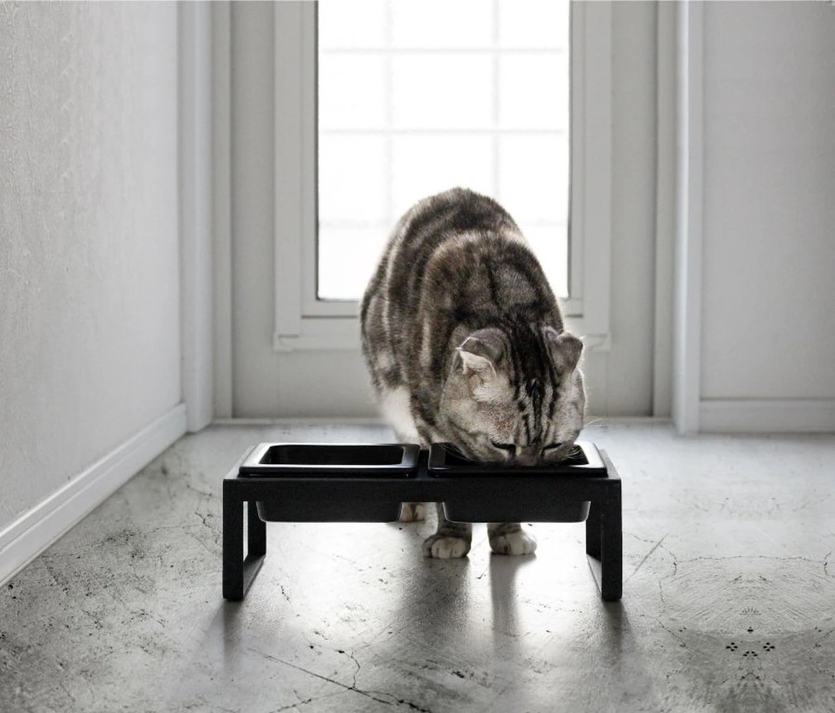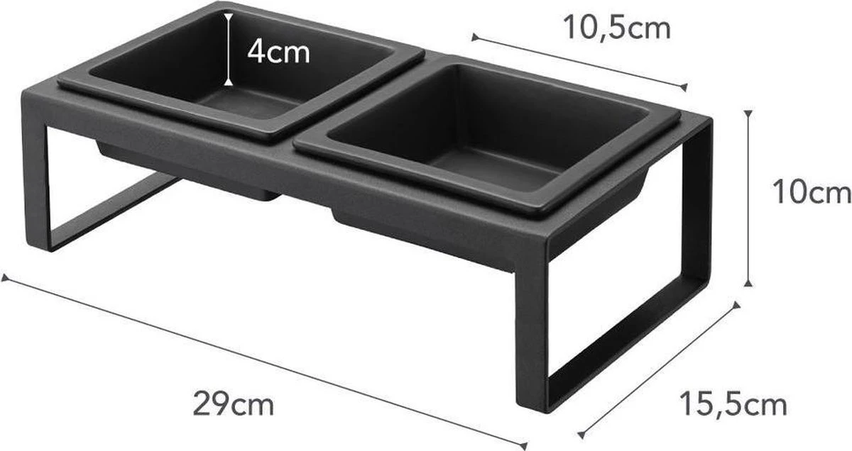 Yamazaki Eetbak – Voederbak Kat – Tweeledig – Zwart