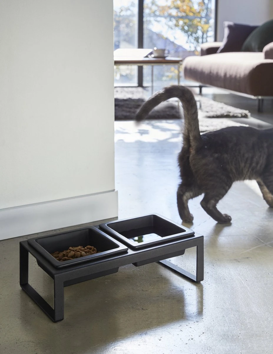 Ook huisdieren eten graag in stijl! Deze diervoederbak van Yamazaki combineert stijl met gebruiksgemak: 2-ledige set voor water en voedsel, hoge positie van de bak (geen belasting van nek en rug van je huisdier), mooie materialen (staal en keramiek).